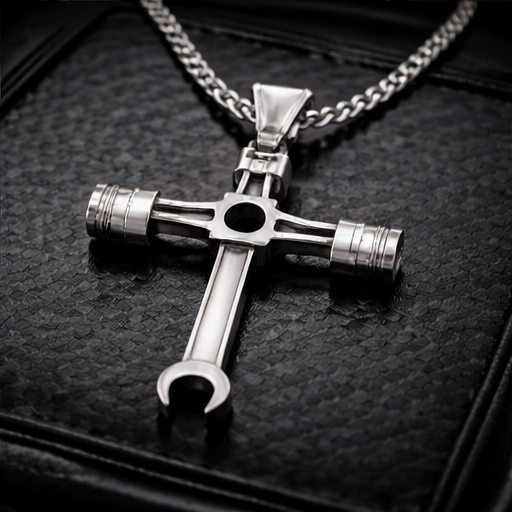 Design: A cross silhouette fusing a piston center, wrench-ended arms, and integrated 10mm socket base. -