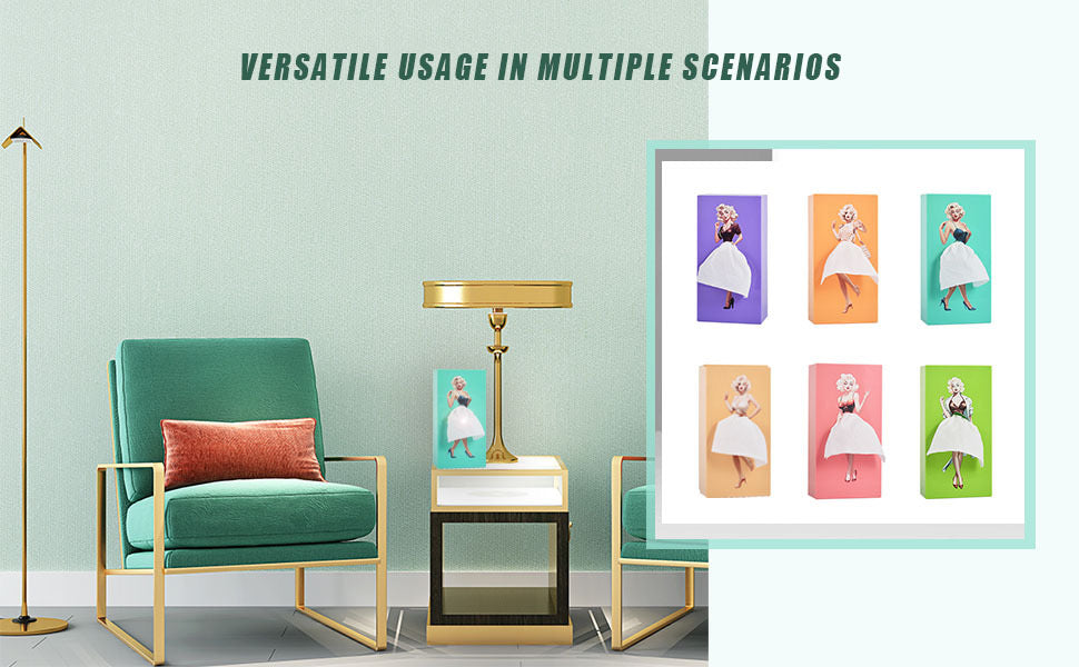 - Beautiful and practical】Creative tissue box is made of high-quality ABS, and the flying skirt on the cover of the tissue box makes it very gorgeous and vivid. Add a beautiful decorative style to your bathroom, restaurant, office, home, and car. This is one of the best home decor. Ensure safety and ease of cleaning. Over time, colors remain vibrant. This ensures that our tissue box lid can be reused for a long time without losing its charm and functionality.