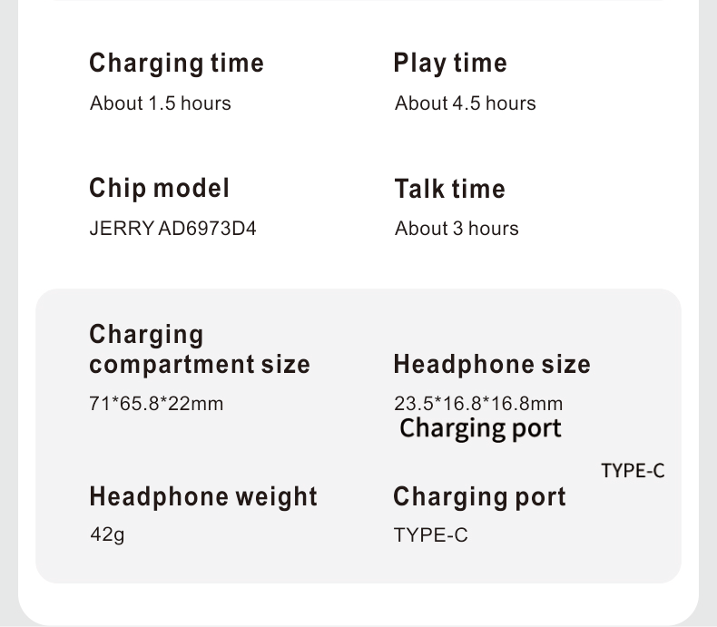 Long battery life: Spinbuds provide up to 50 hours of standby time, 5 hours of playtime, and 3 hours of talk time, ensuring long-lasting usage on a single charge.